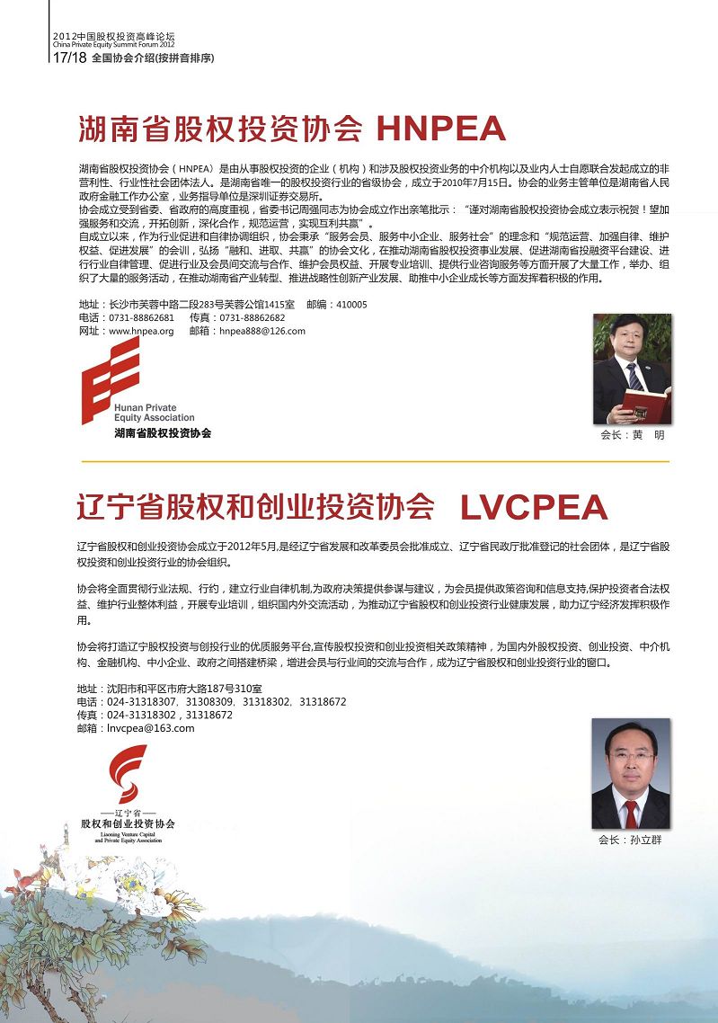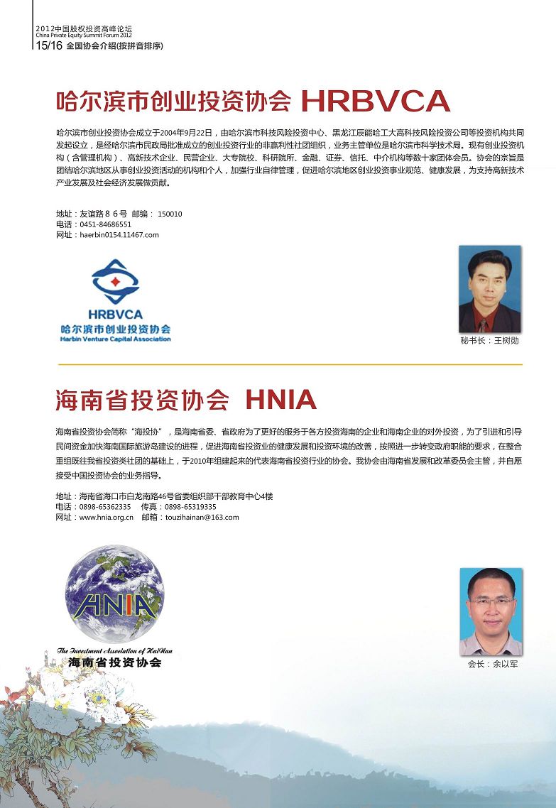 各地VC/PE行业协会